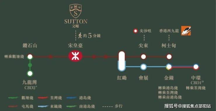 屋苑距离港铁宋皇台站约5分钟步程,1站到启德CBD2,3站到红磡转东铁线前往港岛CBD,4站到尖东,可快捷往返港九核心商业区。
