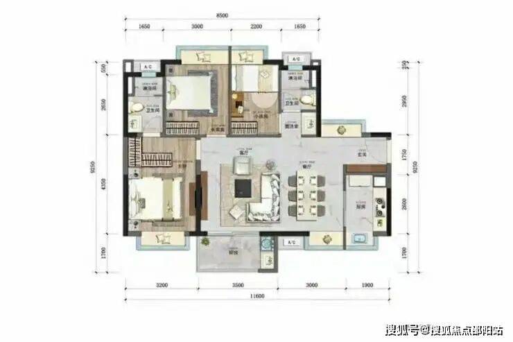 众筑滨海中央的户型设计多样,包括建面约79㎡三房两厅一卫、约95㎡三房两厅两卫、约98㎡三房两厅两卫等多个户型。