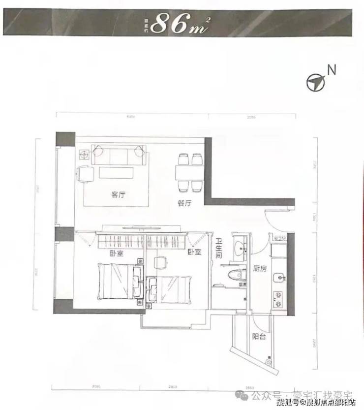 85-86㎡两房