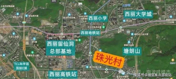 项目西侧为西丽留仙洞总部基地,东北侧为大学城,东侧为塘朗山,西南侧是西丽高铁站。