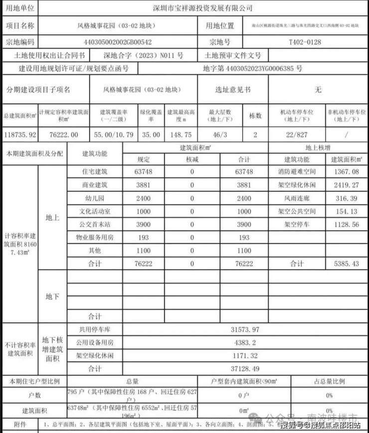 总建面约11.87万平,其中,住宅建面约6.4万平,商业建面约3881平米。共有795户(其中保障性住房168户、回迁住房627户)。