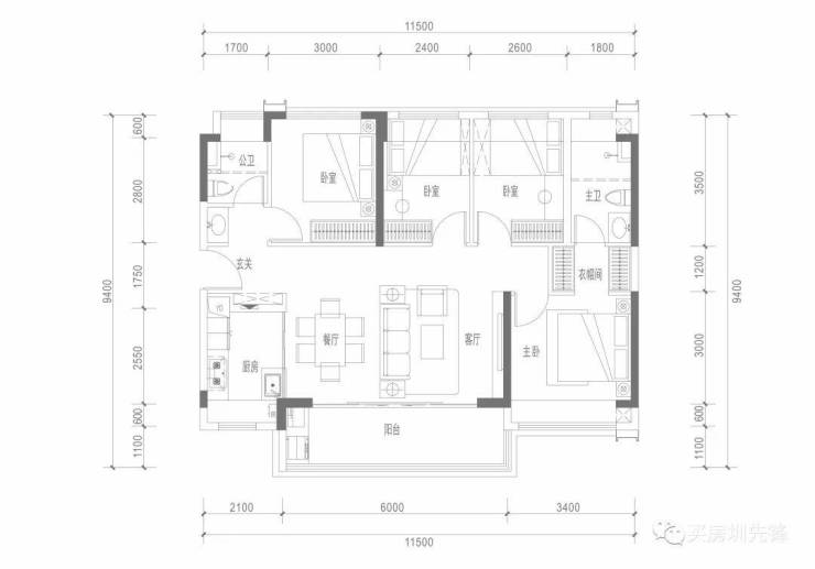 距离地铁11号线桥头站直线约600米,3站国际机场、6站前海湾、8站后海、11站福田中心区。