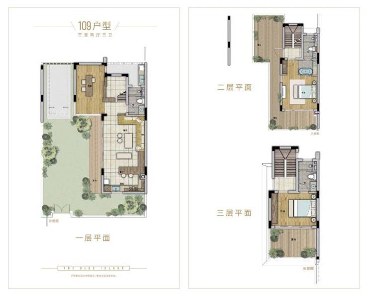 拥有3层空间,配备3间套间,每一层均可享受超大户外空间相连,将室外绿意,最大化引入室内。