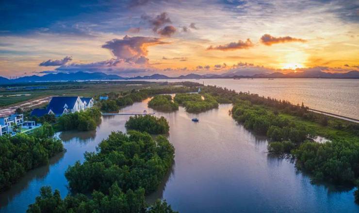 约3500亩超级滨海住假岛,是上天眷顾的宠儿,也是得天独厚的地理恒产。三山环绕同时,拥有约15.8KM辽阔海岸线、约1500亩红树林湿地……唯有如此全维度体量的文旅大盘,方能匹配人们对滨海住假的想象。