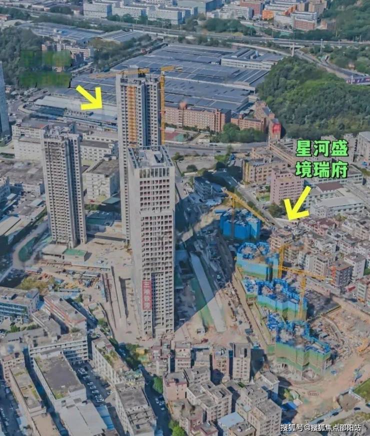 星河盛境3期,由星河集团打造,总占地面积约3.7万㎡,总建筑面积约26万㎡,分两个地块开发,共7栋26-49层高的住宅+1栋公寓组成,总规划1466户,车位1609个,车位占比约1:1.1。