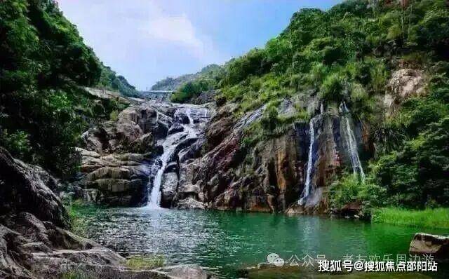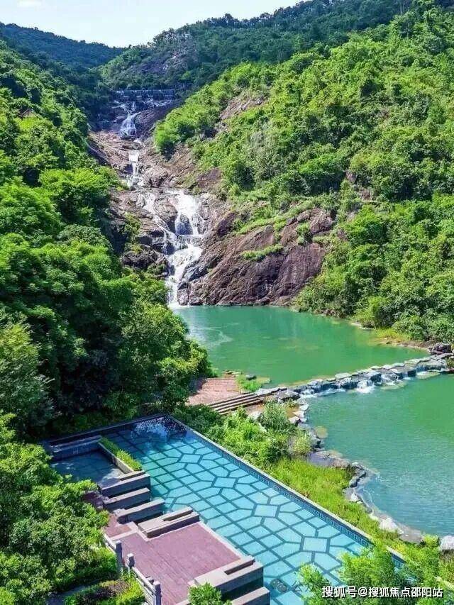 ↑一条九龙潭瀑布飞流而下,无边际泳池承包夏日狂欢
