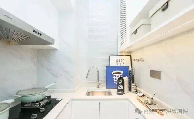 厨房主流的U字型厨房布局,洗切炒一气呵成,降低烹饪的劳动强度及时间消耗,利用面最多,三个方向皆可做收纳,增强收纳性。