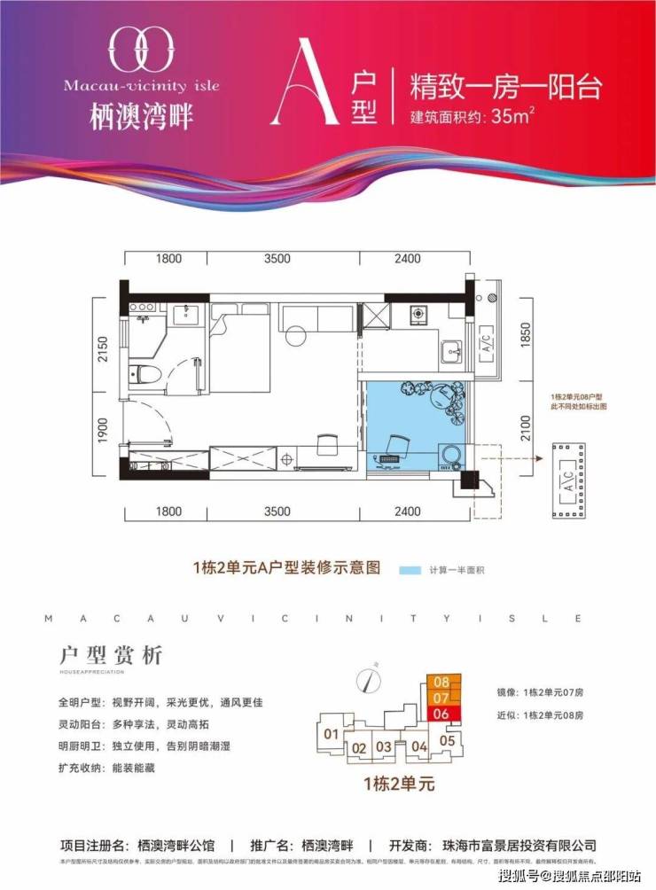 🔺A户型:建筑面积约35㎡,精致一房,百变阳台创意空间