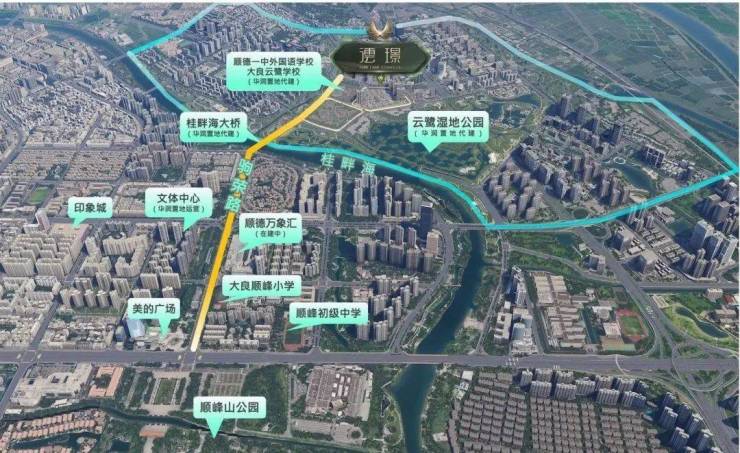 华润置地·顺德澐璟,坐落于佛山市顺德区大良街道的云鹭片区,这一区域不仅是顺德城央的璀璨明珠,更是大良东区超级中轴上的天赋宝地。项目紧邻桂畔河,与顺德绿地中心隔水相望,自然景观与城市繁华交相辉映,形成了“出则繁华,入则宁静”的独特居住体验。