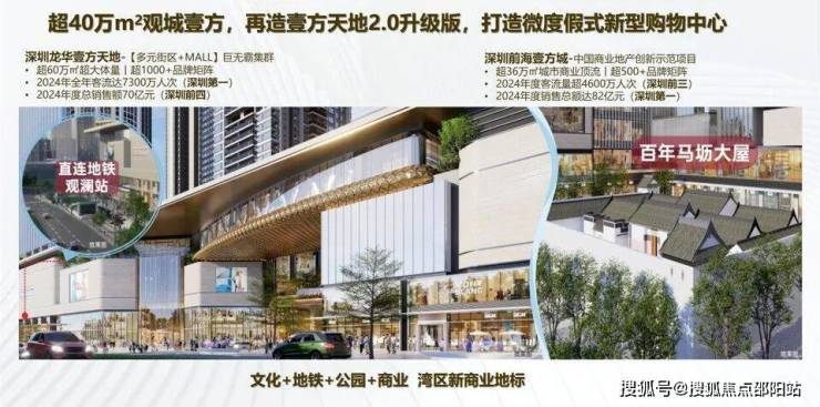 继前海壹方城、龙华壹方天地后,鸿荣源以“文化+地铁+公园+商业”主题再领区域商业升级,融合“观澜之钻”地标建筑、马坜大屋打造特色文化商业街区,铸就观澜壹方,缔造湾区新地标。