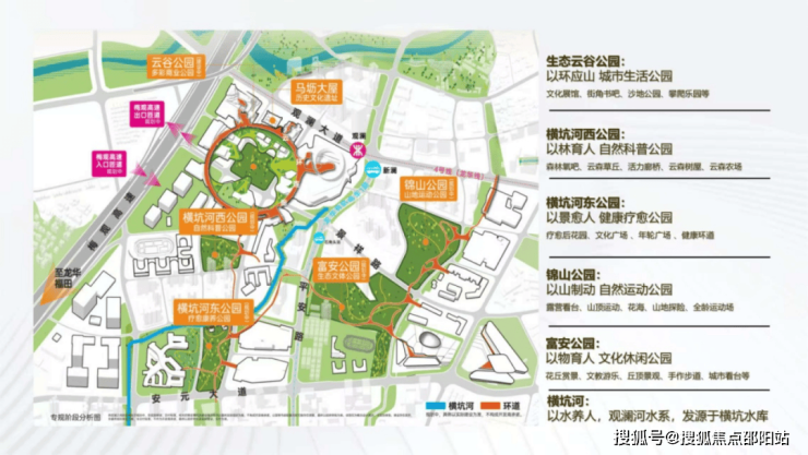 独创规划超3.6km空中连廊,串联5大公园,商业,住区、办公、文化休闲、生态康养等多个特色主题环游路线,超23公顷的生态公园,奢享密度比肩香蜜湖。