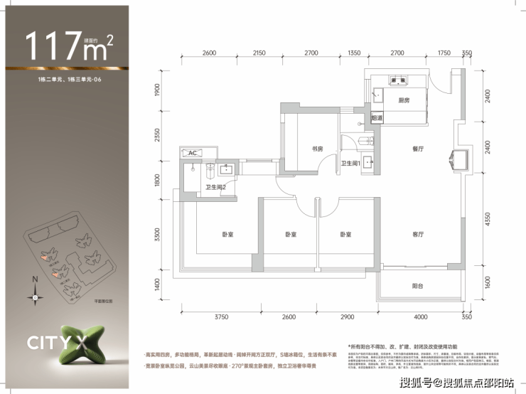 全明设计大景观视野,约3.6米开间宽活阳台;全南向客厅及卧室,主卧270°宽景采光