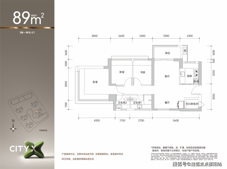 王炸户型 约89㎡3+1房两厅两卫(双娃家庭置业首选)