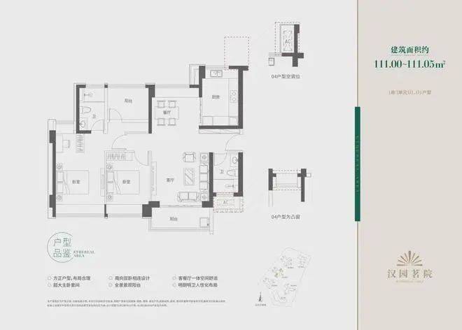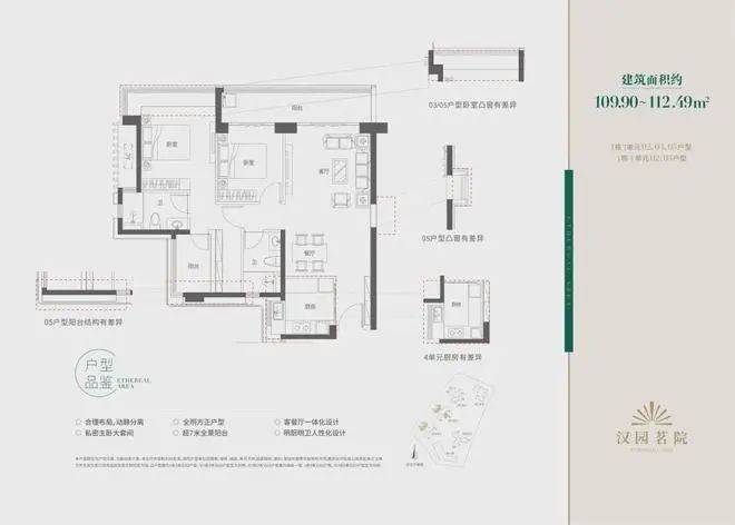 汉园茗院以改善型产品为主,户型面积包括109-112㎡三房两厅两卫、121㎡四房两厅两卫、157-159㎡五房两厅三卫和168-169㎡五房两厅三卫。