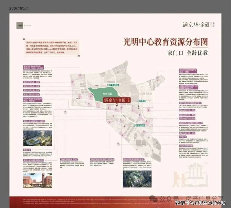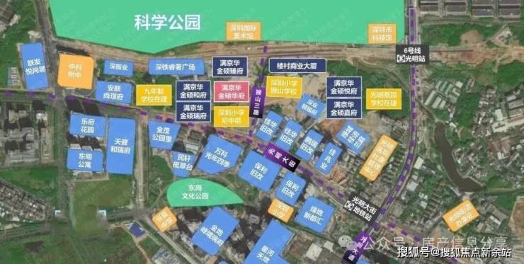 满京华金硕,由满京华集团开发,位于光明区光明中心区光辉大道与狮山三街交汇处,项目所在区域是光明规划最宜居,居住小区板块最大的片区,北侧靠近科学公园,东侧及南侧是深圳小学光明学校狮山校区及初中校区。