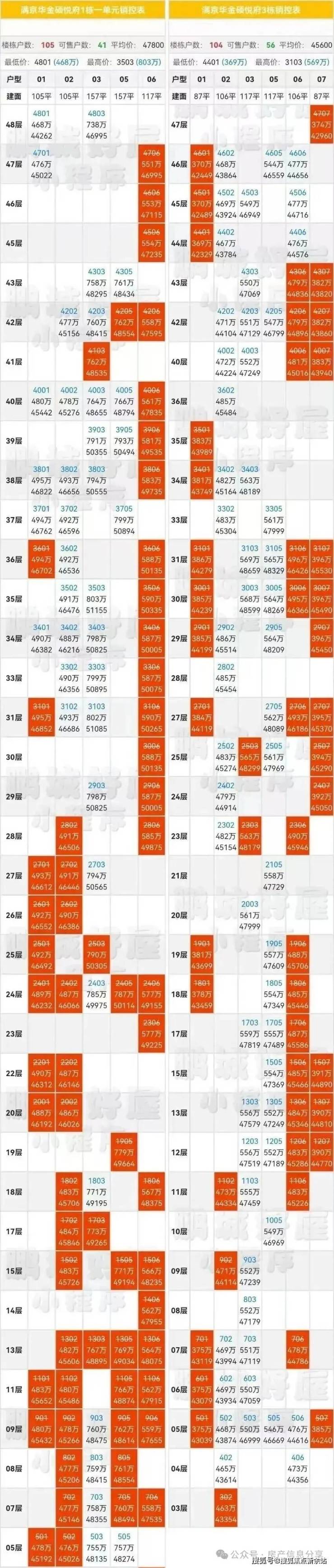 本次推售的是满京华金硕悦府,共由5栋32-48层高的住宅组成,其中1栋1/2单元住宅48F,2栋1单元住宅32F,2栋2单元住宅47F,3栋住宅48F,4栋是1所幼儿园,还配建有社区菜市场,总规划1186户,其中2栋1单元2梯6户,1栋1单元楼王3梯5户,其它栋数全部3梯6户设计。