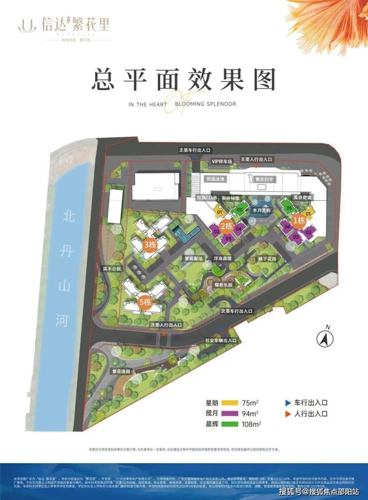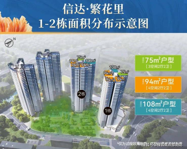 户型有3个:东南向建面约75平三房,西南/东南建面约94平三房(可做四房),以及南北对流建面约108平的四房等。