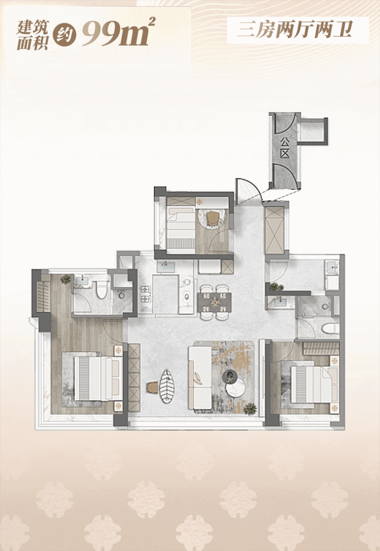 建面约99㎡户型的巧思,从“收纳前置”开始破题。