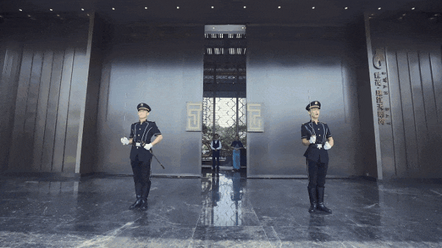此处是项目的入户玄关,双重防火分区铸铝门交付时同样金光璀璨。