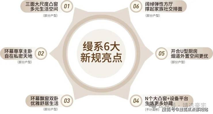 ◎中轴新规 缦系产品建面约92-173㎡三至四房缦系新规产品, 六大设计亮点,定义人居新境。