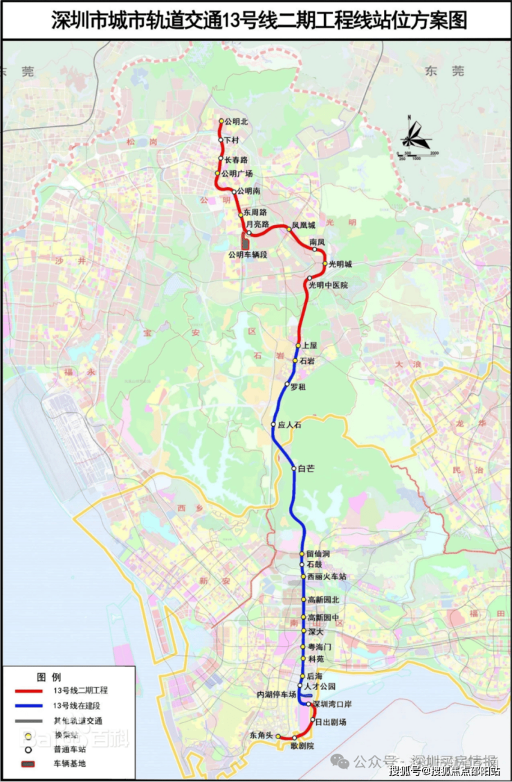 ①13号线及其南、北延长线起于东角头站,终于公明北站,纵贯光明、宝安、南山,线路开通后约30分钟可抵达南山核心区,约45分钟可达深圳湾口岸,以高新技术人才为主要客流,被称为高新技术人才专线