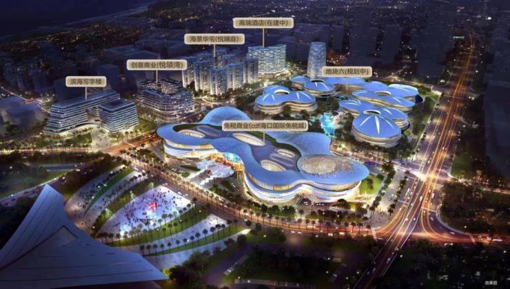 旅·海上都会占位西海岸新海港门户板块,占地485亩,项目定位为全球首个免税商业文旅休闲目的地,其业态涵盖免税商业、有税商业(规划中)、海景华宅、滨海写字楼、创意商业、品牌酒店(在建中)等规划。通过六大地块有机融合,致力于构建国际化文旅休闲目的地新标杆。
