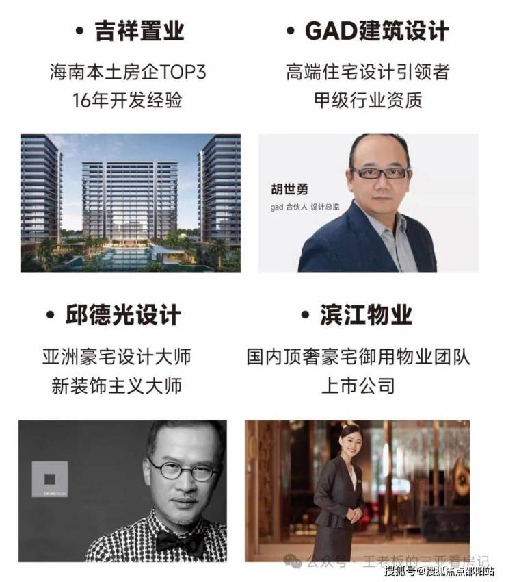 吉祥置业 x GAD建筑设计 x 邱德光设计 x 滨江物业。但凡珍品,往往出自名家之手。吉祥定向选择业内顶级合作伙伴,共同打造标杆——吉祥16号致献三亚湾。吉祥16号,择址三亚湾芯,奢享城市稀缺核心资源配套,同频国际豪宅理念,“只定制不复制”的产品态度,演绎豪宅的精神内核,匠心雕琢建筑面积约111-229㎡云端环幕大平层,全维度回应高净值人群的高端生活品位。