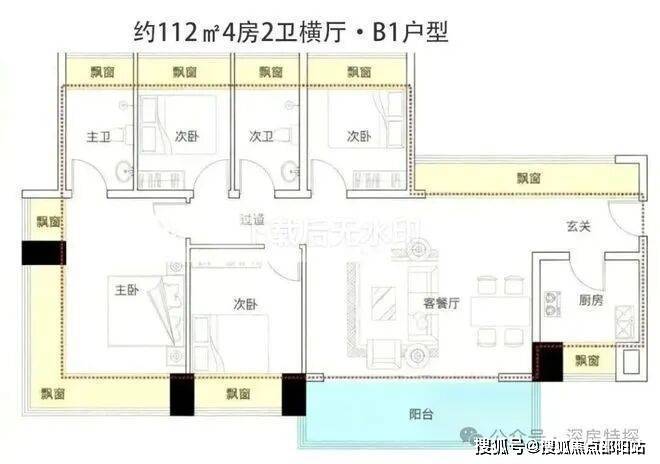 户型面积为105-188㎡纯四房,2梯4户,西南向无遮挡看海,西北向看高尔夫+碧海湾公园。