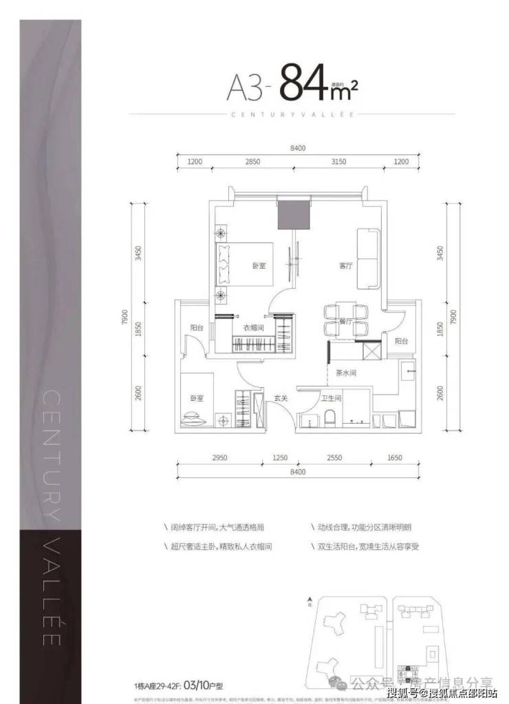 A3户型——建面约84㎡2房