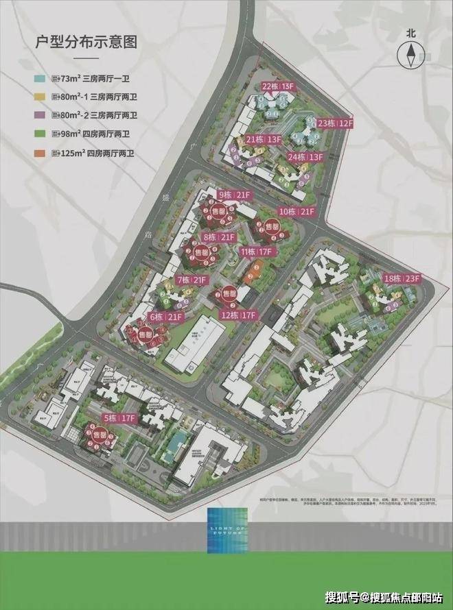 2号地块:6/7/8/9/10栋商品房21F,11/12栋商品房17F,13栋是幼儿园。