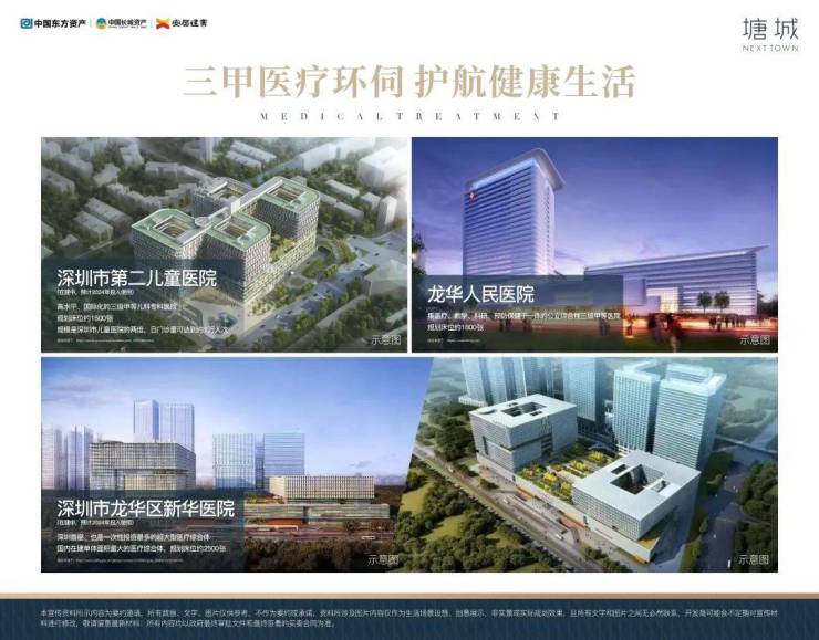 集萃深圳市新华医院(在建中)、龙华人民医院、深圳市第二儿童医院(在建中)、广州医科大附属医院(规划中)等市属公立三甲医院高标准医疗服务体系,护航健康生活。
