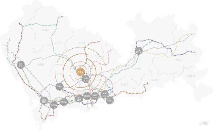 ②深圳都会枢纽的1/13 ,三地铁线交汇(含在建)