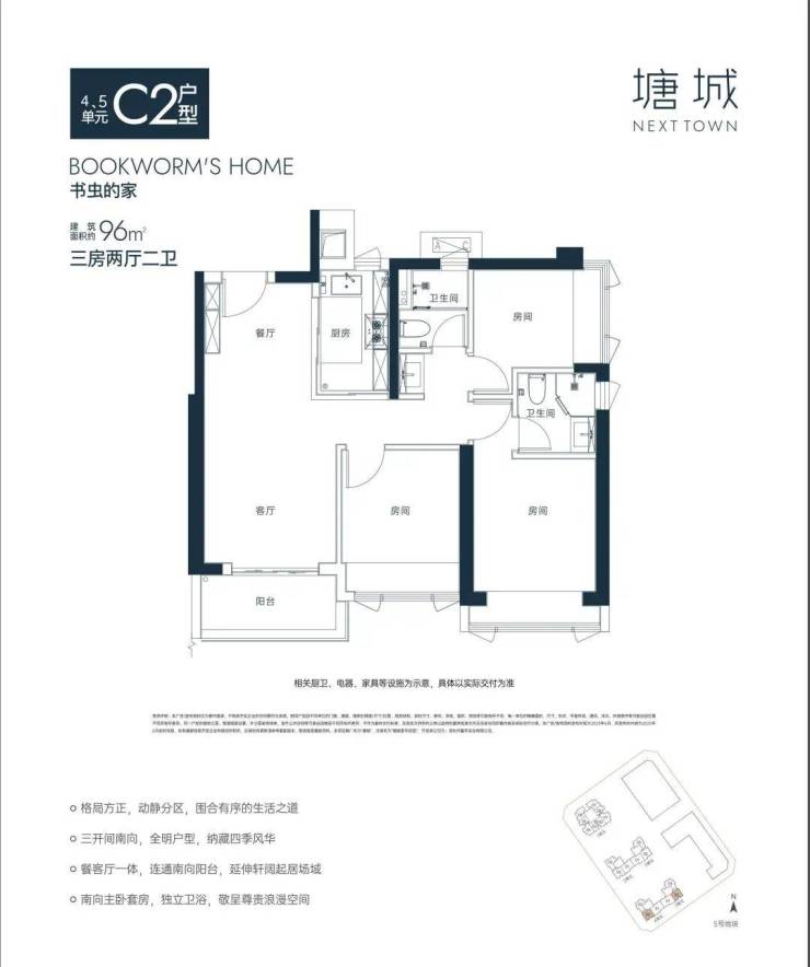 【C2户型96㎡三房两厅两卫】