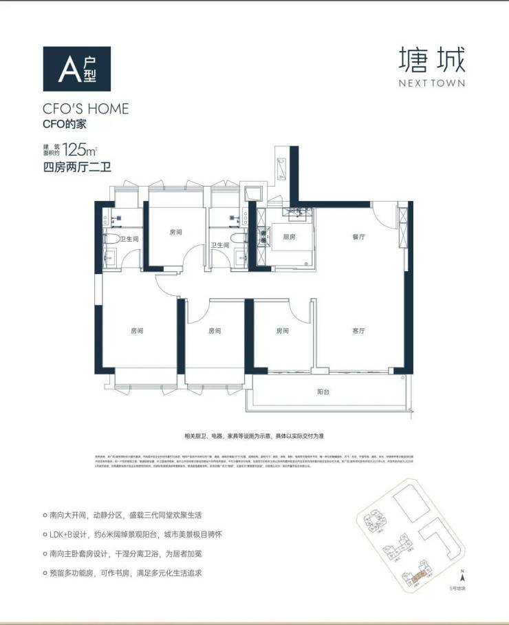 “南向全明四房LDK+B”设计,宽景阳台,拥揽四季
