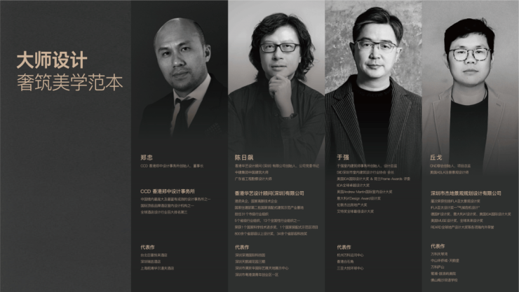 大师设计奢筑美学范本,汇聚CCD郑中设计事务所、香港华艺设计深圳公司、于强室内设计事务所、杰地景观设计公司,在龙华再造一座划时代的TOD大城。
