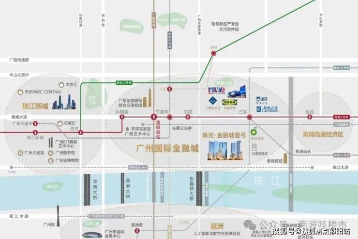 珠光·金融城壹号落子广州国际金融城东部门户要塞,西临珠江新城,北接天河智慧城,南为琶洲商圈,东接黄埔临港经济圈。