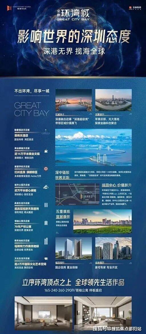 金地环湾城,由金地集团与福田投控强强联合打造,坐落于福田深港超级湾核心,是总建面超103万㎡的超级城市综合体,地处深圳第二中轴关键节点,北接香蜜湖金融区,南联红树林生态保护区,兼具区位红利与生态优势,成为福田核心区高端改善的标杆之作。