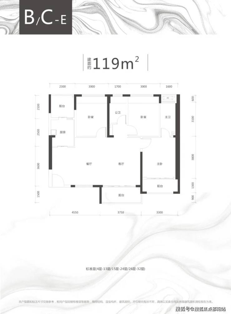 C栋B/C/D/E户型、约100㎡两房两厅两卫),118-119㎡三房两厅两卫