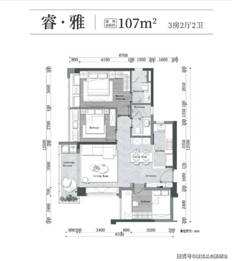 107㎡三房:西南向,LDK 一体 + 4.6 米阔景阳台,实用率高,主城芯改善入门优选。
