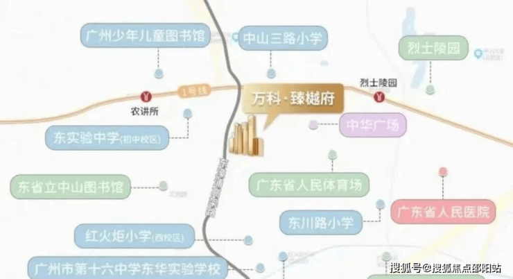 万科·瑧樾府,位于越秀老城区核心腹地,距地铁1号线农讲所约400米,6号线团一大广场站约700米。