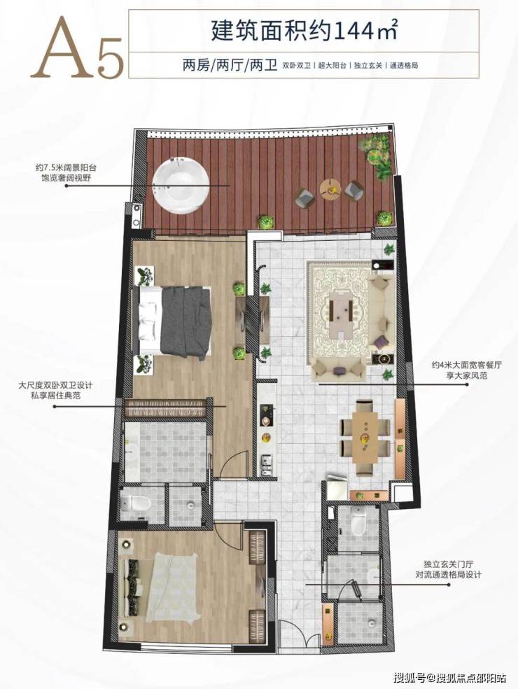 A5户型约144平方米 两房两厅两卫