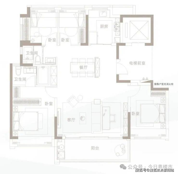 此户型为奢阔大平层,采用独梯入户设计,彰显尊贵感与私密性。南北通透格局,三面采光,风景相融。超长横厅连接约5.8米观景阳台,主卧为星级套房设计,配备步入式衣帽间与独立卫生间,充分满足改善型家庭对高品质生活的追求。
