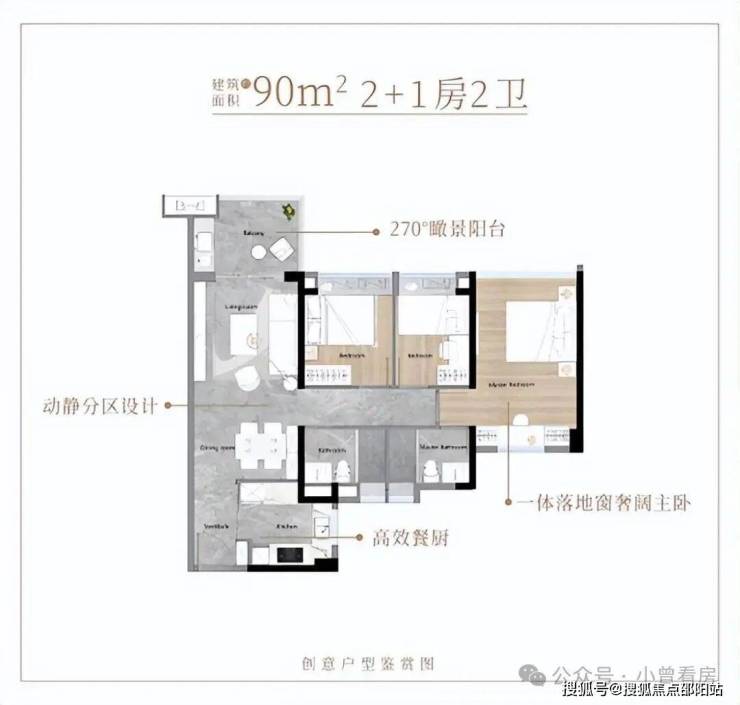 南北通透双阳台设计,瞰景阳台约6.9米