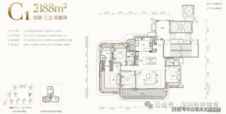 规划总户数约616户,首推1栋3-5-6-7单元,220套,约143-168-188-245-260-330㎡四房和顶楼约488平㎡户型。
