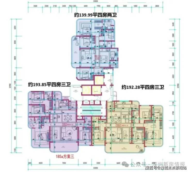 楼盘楼栋一共有12个单元,但4单元是社区门楼,其它11座是住宅,总高22-24层,楼高77-80米,2梯2户的标准层高是3.3米,3梯3户的标准层高是3.15米。
