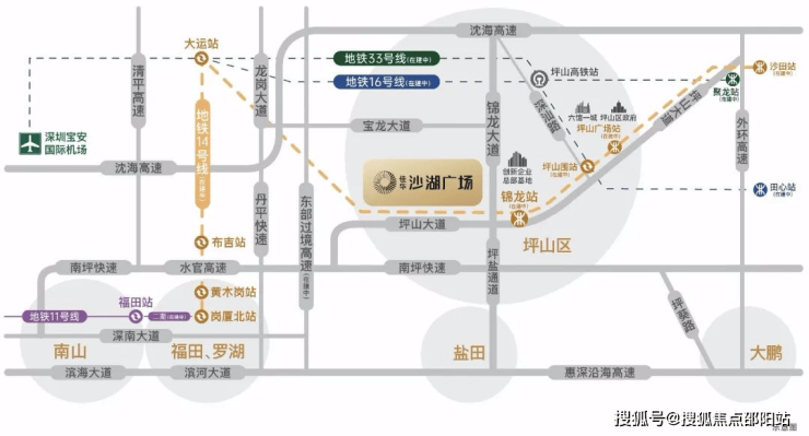 地铁:紧邻地铁14号快线坪山门户站——锦龙站700米(已通车),12站福田岗厦北。地铁16号线(预计2022年内通车)、地铁33号线(在建)