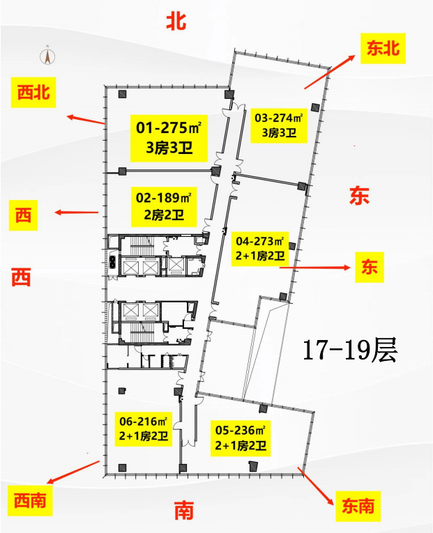 偏核心筒设计约70%使用率电梯厅自然采光 舒适候梯