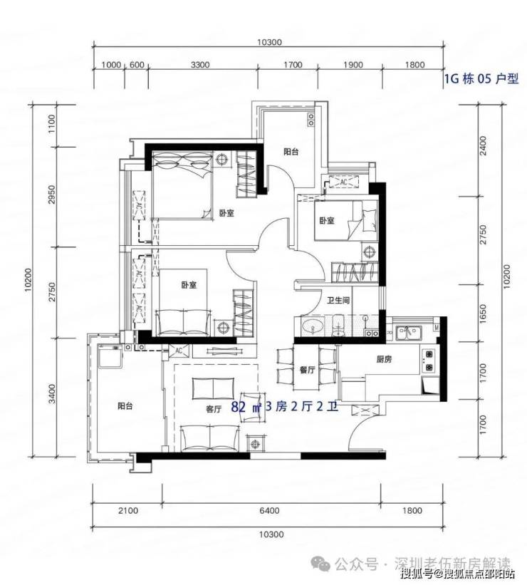 81-82m²3房2厅2卫,有竖厅和南北通户型,客厅开间3.3-3.4米,都有阳台改主卫以及增加客厅进深改造,赠送后得房率在92%左右。