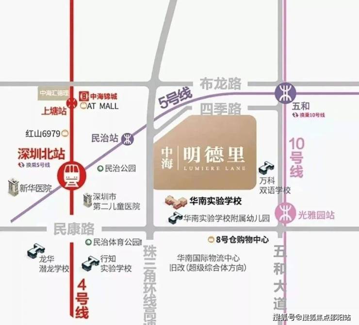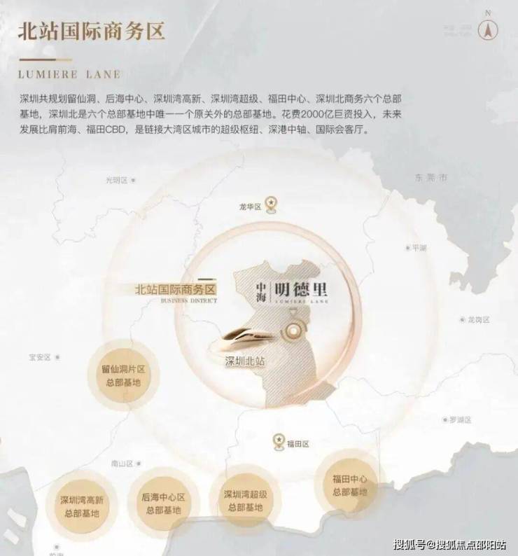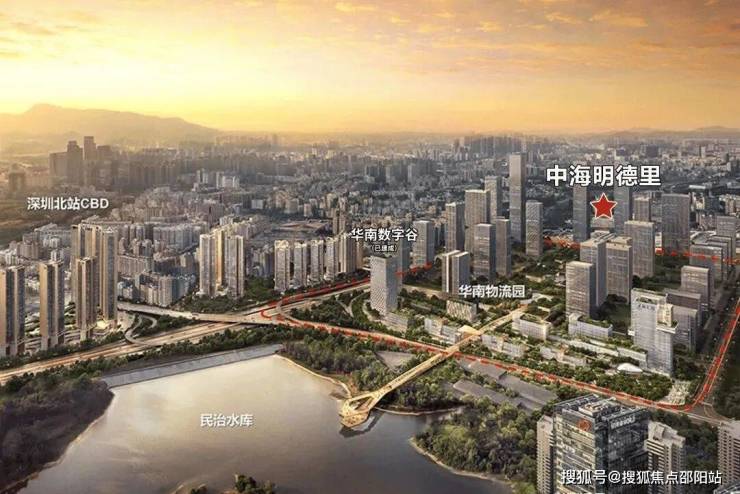 2)北站国际商务区,深圳六大总部基地之一,高投入打造国际化城市会客厅;项目距离深圳北站直线约2公里,所在民治街道是龙华目前发展的核心区域;明德里,于双区之中,在重点产业走廊之上,区域优势得天独