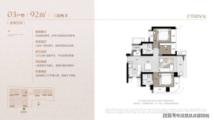 ·告别传统户型设计不合理,造成一定程度的空间浪费;全系无暗卫暗厨,让阳光铺满每个角落!